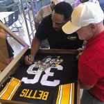 Kiski Area School District art teacher Larry Klukaszewski hand-painted a jersey at the event, which Bettis later signed. That and a hand-painted cornhole game were donated to the cause through the Larry Klu Foundation.