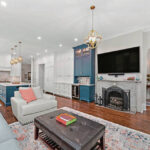 The home has five bedrooms, four full bathrooms and one partial bathroom and encompasses 6,339 square feet. It has an open-concept kitchen with Thermador appliances, new marble countertops and custom handcrafted cabinetry. A dining room and lounge area in the back of the home are accessed by a few steps from the first level. The primary bedroom suite features a marble shower and a spacious walk-in closet. A finished basement provides additional living space with a movie room, office and home gym.
