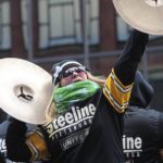 A member of the Pittsburgh Steeline Drumline performs with the group along the Boulevard of the Allies during the Pittsburgh St. Patrick’s Day Parade on Saturday, March 11, 2017.