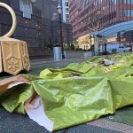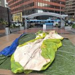 The 35-foot vinyl pickle suffered a large tear, and it flattened on the ground at EQT Plaza on Liberty Avenue, Downtown.