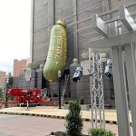The pickle lay motionless on the ground next to its golden ornamental crown. It was to be the world’s largest pickle ornament, Waldrup said. It is the same blow-up pickle used for the annual Picklesburgh, the all-things-pickle festival that was rated the No. 1 specialty food festival in a USA Today poll two years in a row. The balloon hangs above the Roberto Clemente Bridge during the festivals.