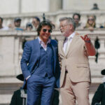 Actor Tom Cruise, left, and director Chris McQuarrie pose for photographers on the red carpet of the world premiere for the movie “Mission: Impossible - Dead Reckoning” at the Spanish Steps in Rome Monday, June 19, 2023.