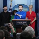 Joining Sudeikis at the daily briefing were cast members Hannah Waddingham, Brett Goldstein, Brendan Hunt and Toheeb Jimoh. The group was given a tour of the president’s private living quarters, a White House official said.