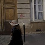 A woman walks past a graffiti reading “Emily Not Welcome” scrawled on part of the facade of the building where the fictional character Emily Cooper lives, at 1 Place de d’Estrapade, in Paris, Wednesday, April 19, 2023.
