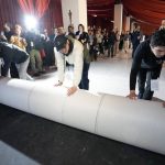 There wasn’t any debate over the change, Love said. They just knew they had the freedom to break from tradition. They tried some other colors too but they seemed too dark with the covered tent. “We chose this beautiful sienna, saffron color that evokes the sunset, because this is the sunset before the golden hour,” Love said.