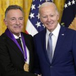 President Joe Biden presents the 2021 National Medal of the Arts to Bruce Springsteen at White House in Washington, Tuesday, March 21.