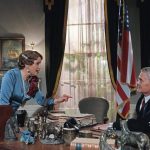 He seems smitten with her as whispers suggest FDR’s wife Eleanor (Harriet Sansom Harris) is living in New York with a woman.