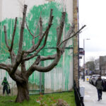 A new Banksy mural sprouts beside a cropped tree in London. Many see an environmental message