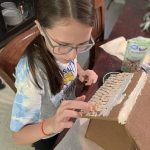 Eva measured and cut the gingerbread by tracing it along the cardboard pieces.