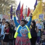 Vanessa German, center, joins a march celebrating Indigenous Peoples Day in Oakland in October 2015. German is collaborating with the Frick Pittsburgh on a multi-year art exhibition.