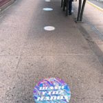 We spot round shapes on the ground that help us remain 6 feet apart for social distancing during the pandemic.