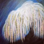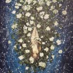 Oplinger’s primary medium of choice is acrylic paint, with work expanding into ink and charcoal, wearable 3-D art, writing and film, as well as projects advocating for survivors of human trafficking.