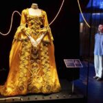 The Cinderella-like yellow gown from the “Bejewelled” music video from the “Midnights” album is displayed in the Prince Consort Gallery. A stage costume from her Reputation Tour, complete with snake microphone, is in the British Gallery.