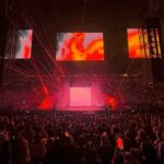 A deeply invested, heavily female crowd came ready to celebrate and party with Eilish, with some arriving Saturday and camping out near the arena. Long lines dotted the merch booths (including a truck in the parking lot), the wave broke out in the minutes before showtime, and fans came dressed in all of Eilish’s different eras.