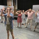 Cast members rehearse for the Actors and Artists of Fayette County production of “Mamma Mia!” that will include flashback scenes to flesh out the musical story.