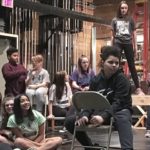 From left, Greensburg Salem Middle School students Andie Beck, Zach Rush (Joseph Pulitzer) and Chloe Ecklund, Rachel Leo and Nicholas Heinnickel (Jack Kelly), rehearse the spring musical.