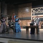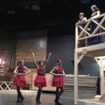 Bowery Beauties, from left, Ava Lake, Mikyla Curry and Emily Frazier, and above, Wesley Heverly (Jack Kelly) and Rachel Leo (Katherine Plumber) rehearse for the Greensburg Salem Middle School’s spring musical.