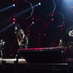 “Cold Gin” featured a guitar solo by Tommy Thayer with a his guitar firing a pryo blast to match an overhead light show . “War Machine” from the Creatures of the Night album had bassist Gene Simmons breathing fire; while he had a solo and spit blood on “God of Thunder.” “Love Gun” had lead vocalist and guitarist Paul Stanley interacting with the crowd.