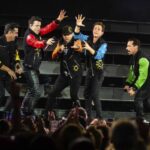 In color-coded clothes, the New Kids launched their set with “Magic” on a stage of stairs and rainbow-lit screens, all while making liberal use of their confetti cannons.