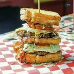 The “Buggie” is two 8-ounce burgers in between two grilled cheese sandwiches with two layers of egg, bacon, tomato, lettuce and sauce.