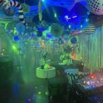 Fake smoke is continually hanging in the air. Dim lighting creates a spooky atmosphere. Tables are topped with skulls and rest-in-peace headstones. Bartenders create themed cocktails with fake eyeballs, brains and blood.