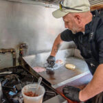 “If you have a flat-top griddle like a Blackstone or in-house griddle, you want to get that temperature really hot — to like 550 (degrees),” Saward said. “If you don’t have a burger press, you can use a spatula and some kind of parchment paper and a heavy item to put on top of the parchment paper. Go as hard as you can.”