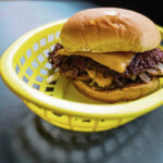 “We just roll meatballs — we don’t add anything to it. That meatball then goes onto a 550-degree flat-top griddle and is smashed down with a burger press. We like to do ours thinner than usual,” Saward said. “That creates caramelization of protein and this really good umami flavor. Because it is so hot and such a quick process, it still remains juicy and flavorful — it’s not dried out.”