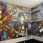 They have an area lined with “Golden Girls” wallpaper and figurines of the four ladies from the show near the restrooms, which are painted in colorful designs. The 1980s and ’90s décor is a nod to the comedy television series from the era that featured four women living in the same household in Miami Beach.