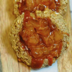 Spoon a small amount of apple pie filling on top of each cookie. Warm caramel sauce and drizzle generously.