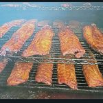 Lightly sprinkle baby back ribs with rub on the front and back. Place in smoker for 3½ hours on low.