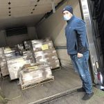 Drew Krohnert, a member of the Dietz & Watson special projects travel team, is seen with a 2.5-ton donation of meats and cheeses to the Greater Pittsburgh Community Food Bank.