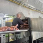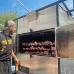 Dan Johnson, the owner of “Johnson’s BBQ” based in Virginia Beach, Va., is one of a dozen barbecue companies at the annual Miller Lite Kickoff and Rib Festival, which runs Wednesday through Monday.