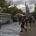 Rib festival participants set up shop in front of Acrisure Stadium on the North Shore on Tuesday for the annual Miller Lite Kickoff and Rib Festival, which runs Wednesday through Monday.
