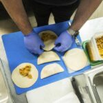 Jorge Amador, 25, hails from Honduras and is a chef at Secretos. On the day of a visit by a TribLive reporter, he was in the process of making pastelillos — flour dough stuffed with meat, similar to empanadas. He first learned to make them from his mom.