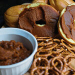 Pumpkin butter is the pure essence of the squash, sweetened with brown sugar and cooked down to a rich, jammy spread. Once it’s ready, it can be spread thickly on toast or bagels. It can also be a savory-sweet dip for pretzels or graham crackers.
