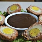 Roll covered eggs in flour, followed by the beaten eggs and then roll and cover in Panko breadcrumbs.