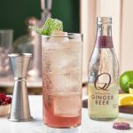 In a shaker, add vodka, lime juice and syrup; shake with ice. Strain into an ice-filled highball glass. Top with chilled Q Ginger Beer. Garnish with a powdered-sugar sprig of mint.