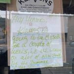 A note on the door dated Feb. 8, 2024, reads: “Hey Yinzers, Klavon’s is going to be closed for a couple of weeks. We are working on a lot of new stuff for the summer! C Yinz Soon. Thanks.”