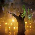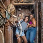 When night falls, it’s time for six haunted houses, immersive themed scare zones, three escape rooms and three “darkly entertaining” live shows, like Monster Stomp on Ripper Row, a Jack the Ripper-inspired modern rock and rhythm dance spectacular.