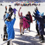 A group of women from Canton, Ohio, called the Buckeye Bluetits range in age from 40 to about 80 years old and returned for their fourth year. They swim year-round at Meyers Lake at home but wouldn’t miss the chance to swim in Vermont in what organizers say is some of the coldest winter swimming in the world.