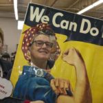 Some posed with a large poster of Rosie the Riveter, iconic World War II symbol of women’s empowerment in the workplace, topped with the words, “We Can Do It!”