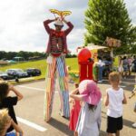 McGowan-Arrowroot is a stilt walker. Standing above the crowd, he entertains for two hours at the Pints in the Park event at Hampton Community Park on a hot and humid 88-degree day in June.
