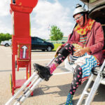 Learning to get on and off stilts requires finding a place to do it such as the back of a van like McGowan-Arrowroot does. Haase uses a staircase. She will sit on a step and put on the stilts, which take time to maneuver, she said.