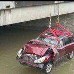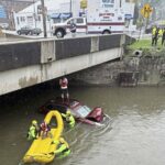 A crew from Ferra’s Automotive Services, with help from the swift water rescue team, was able to remove the car from the creek without damaging either the Crescent Avenue road bridge or the nearby railroad bridge, Tunon said.