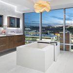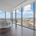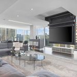 Residents can control the space with the click of a button. Flat-screen TVs, motorized blinds, cabinets and security cameras function automatically. They also have access to all Fairmont Hotel amenities: gym, concierge, room service, spa and valet parking, in addition to three personal parking spaces. The condo is accessible only via a private elevator.