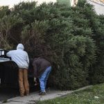A towering evergreen from Nona Lee’s Hill District home is loaded onto a truck ahead of its journey to the City-County Building in Downtown Pittsburgh on Saturday, Nov. 14, 2020.