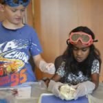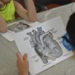 Students learned about the circulatory system through various exercises. They also examined a sheep’s heart and simulated how health problems are diagnosed using a salad spinner centrifuge and fake blood samples. Other topics covered were digestion, the brain and DNA.