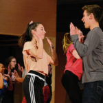 Camryn Kwiatkowski and Benjy Gilby perform in a scene as Sophie and Sky during a rehearsal for Carlynton’s production of “Mamma Mia” on Wednesday, March 6, 2019, at the school.