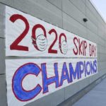 A sign that reads “2020 Skip Day Champions” hangs at Chartiers Valley High School during a parade celebrating the Class of 2020 on Thursday, May 28, 2020.