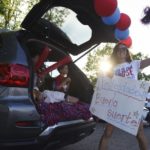 Spanish teacher Autum Kissinger and her children Christian Kissinger, 9, (left) and Graysen Kissinger, 7, cheer for graduating seniors during a parade celebrating the Class of 2020 at Chartiers Valley High School on Thursday, May 28, 2020.
